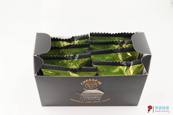 從外包裝您可以看到是一個不算大也不算小的外盒,約 14cm x 9.5cm x 7cm,是一款超不佔行李箱空間的零食,而松露鹽味主要顏色為綠色,您可以看到綠色的盒蓋上面有 KAKITANE KITCHEN 的 Logo + 起司的圖案,且包裝外盒就分別用英文和日本一直強調 Chesse in KAKITANE,讓人一眼就知道是關於起司的零食 🧀
