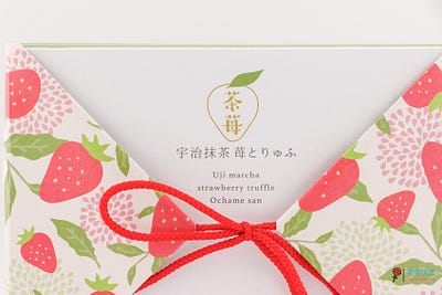 超會包裝的日本人,當然在外觀上一定是大拇指,拿到一定會是會發出 哇~,【宇治抹茶草莓松露巧克力】的包裝採用早期日本人送禮的「風呂敷風格」的概念去設計,風呂敷講直白一點就是過去送禮在會用一塊包巾把禮物給包裝起來的一種包巾綁法,而伊藤久右衛門就是將這種綁法設計在紙盒上面,再用一條紅線將紙盒給稍稍綁緊裝飾,真的很厲害很有質感!
