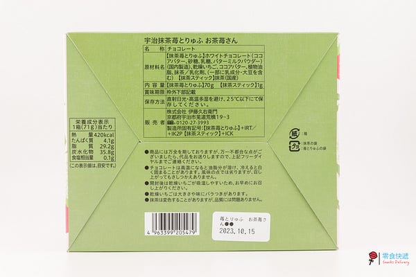 而我們今天要介紹他們家的產品是『宇治抹茶草莓松露巧克力』,算是期間限定產品,像今年 2023 年就賣到 11/07 號,所以有興趣的朋友剛好有到日本的朋友別錯過唷!好~ 話不多說,跟著零食小姐來開箱吧!