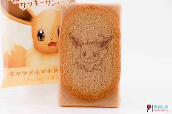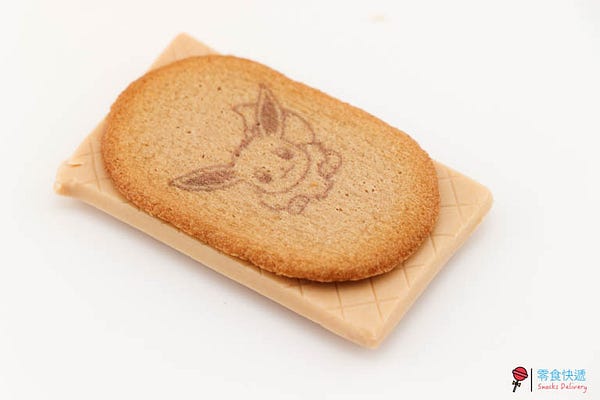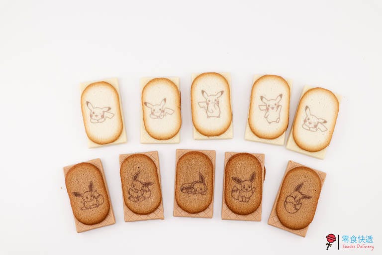 不管是皮卡丘還是伊布的外包裝都是不同的可愛表情,若你是寶可夢迷,或許拆開小包裝前,需要維持原包裝小心地剪開,這樣就可以把包裝一起搜集起來保存了(收藏時還有超濃郁的餅乾味道喔!)